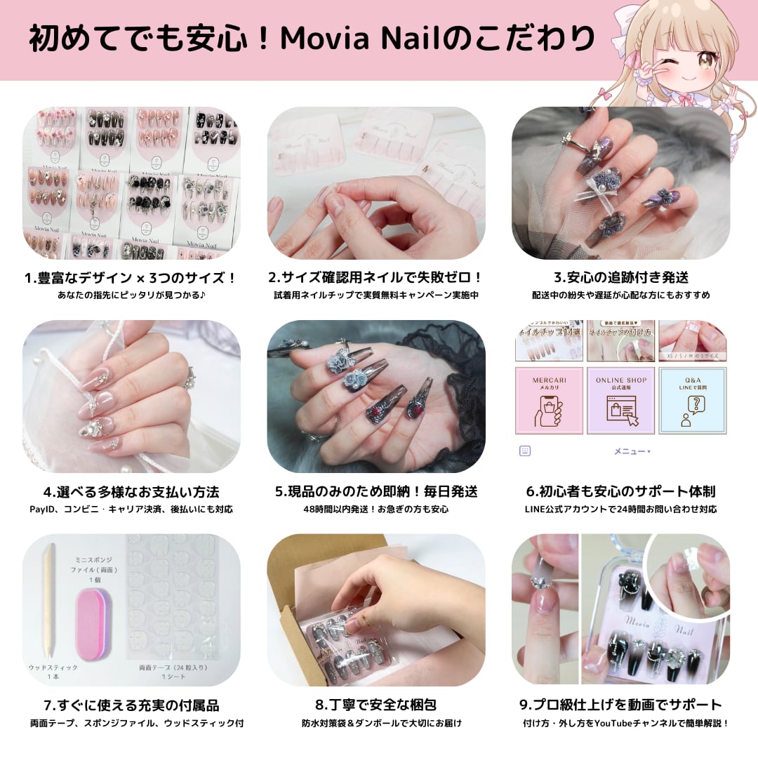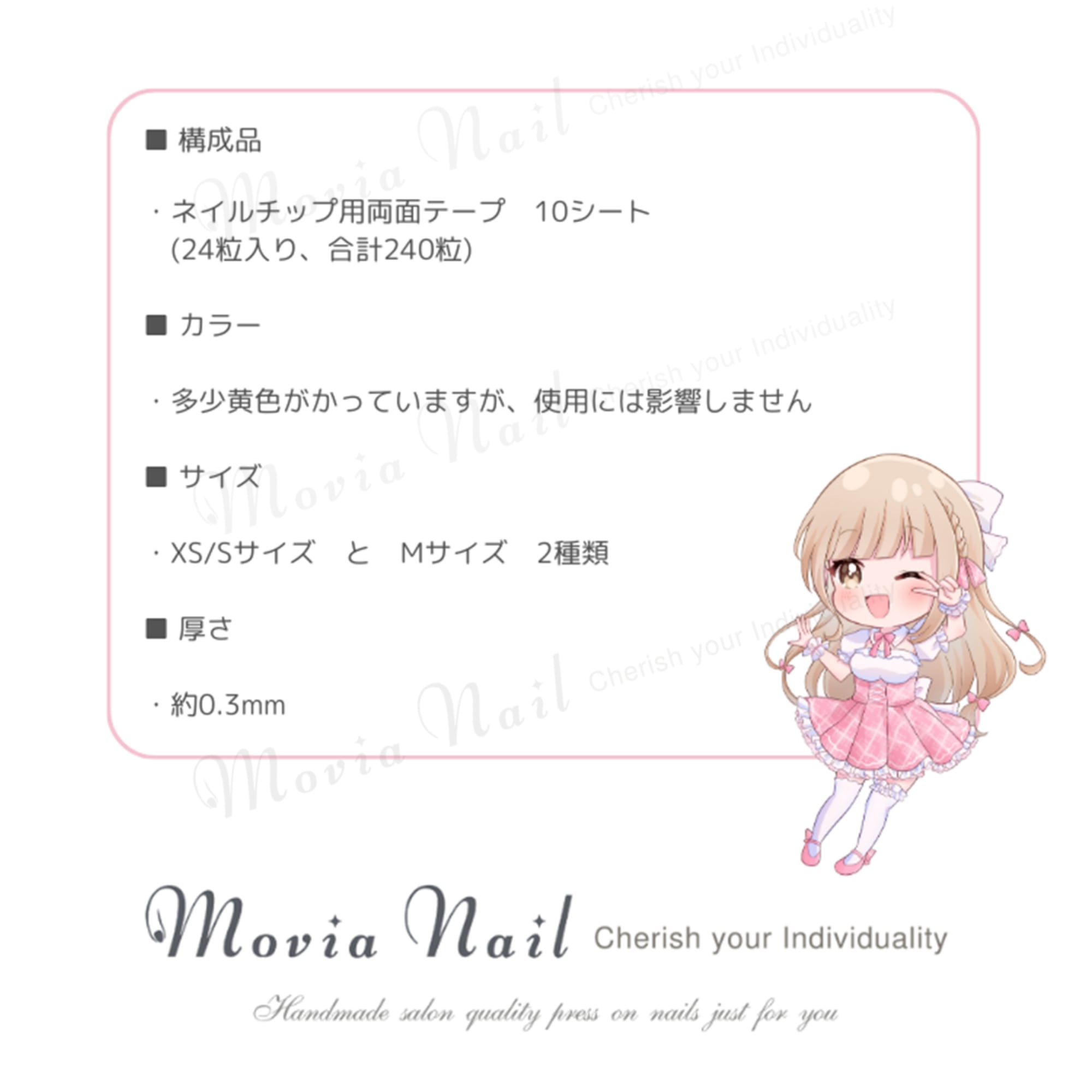 【ネイルチップ用両面テープ(24粒入り) 10シート ※付属品タイプ】つけ爪粘着グミ 粘着シール 粘着グミテープ|Movia Nail