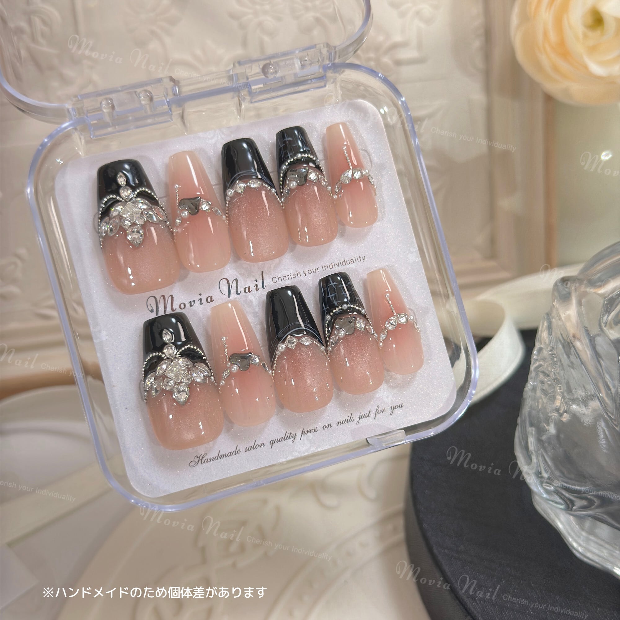 BK No.340【ミディアムコフィン】ブラックチークピンクマグネット量産型地雷系マグネットフレンチサブカル姫ギャル冬ネイルチップ現品