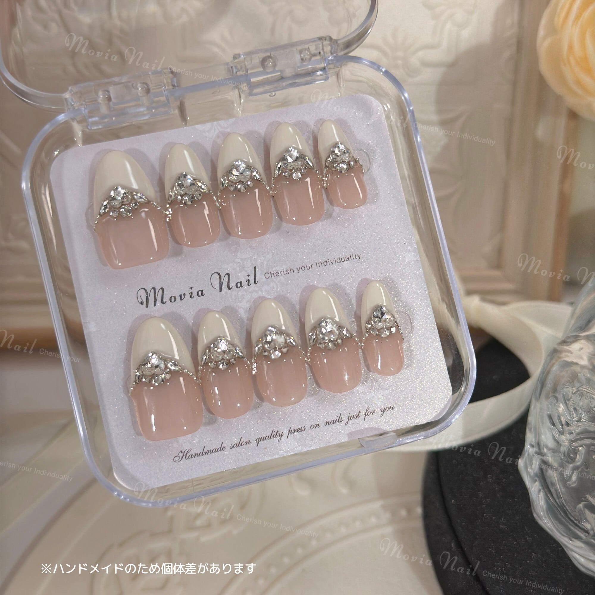 WH No.341【ショートアーモンド】ホワイト量産型地雷系王道フレンチガーリーサブカル姫ギャルネイルチップ現品